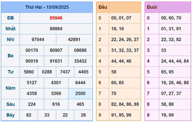 Đối chiếu lại kết quả xổ số ngày 15/09/2025