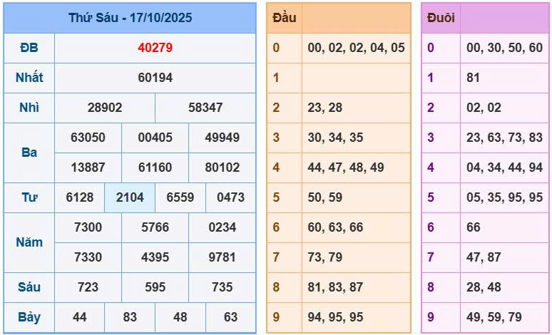 Đối chiếu lại kết quả xổ số ngày 17/10/2025