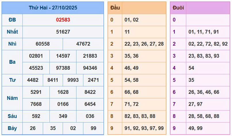 Đối chiếu lại kết quả xổ số ngày 27/10/2025