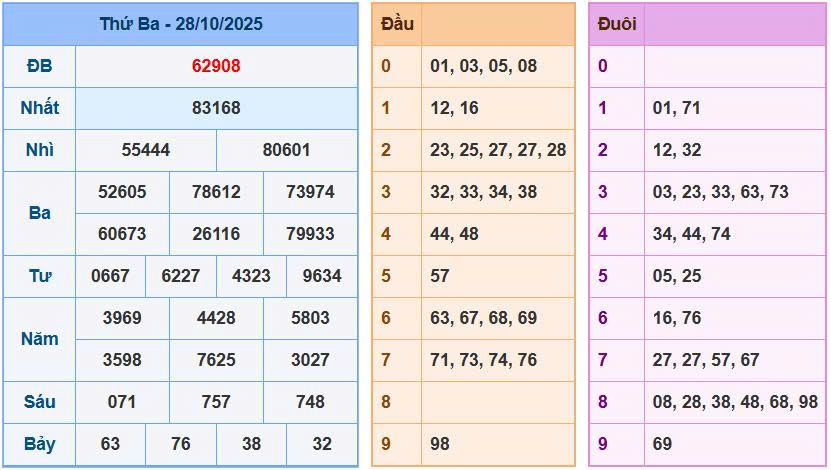 Đối chiếu lại kết quả xổ số ngày 28/10/2025