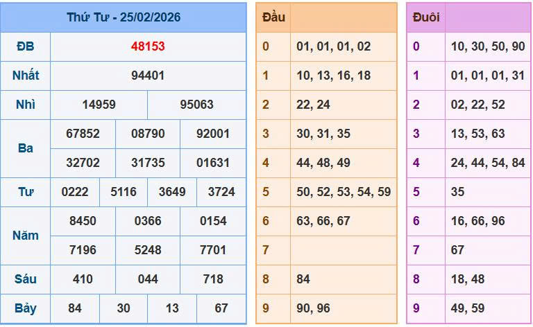 - Giải Đặc biệt: 48153