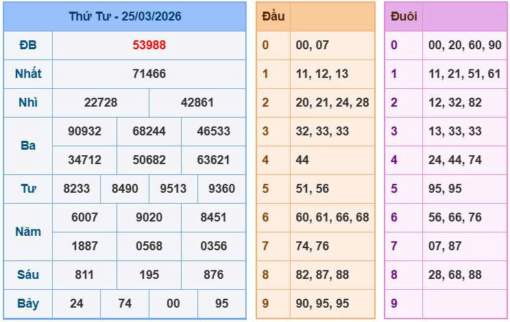 Điểm lại kết quả dự đoán ngày 25/03/2026