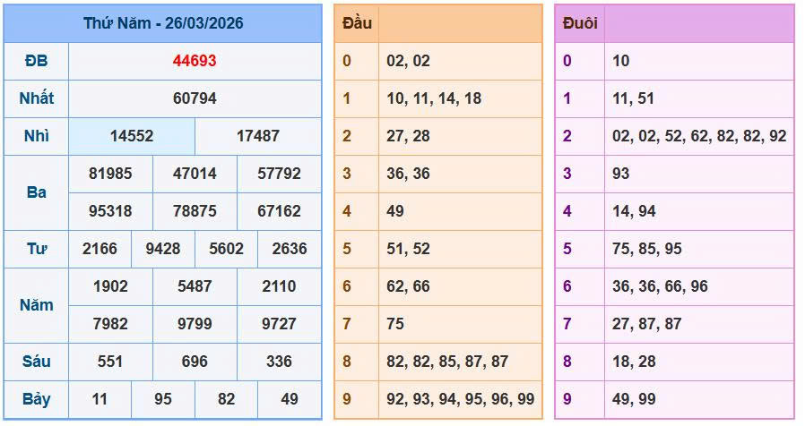 Nhìn lại bảng kết quả dự đoán ngày 26/03/2026